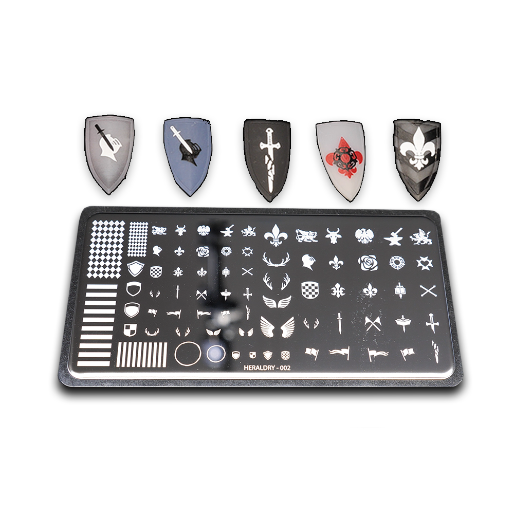 Expand your noble forces with the Heraldry(002) Stampin' Plate! Building on the rich tradition of chivalric design, this plate offers even more bold patterns, intricate crests, and classic heraldic symbols to elevate your knights and warriors. Perfect for banners, shields, and armor, Heraldry(002) adds an extra layer of grandeur and history to your tabletop forces.